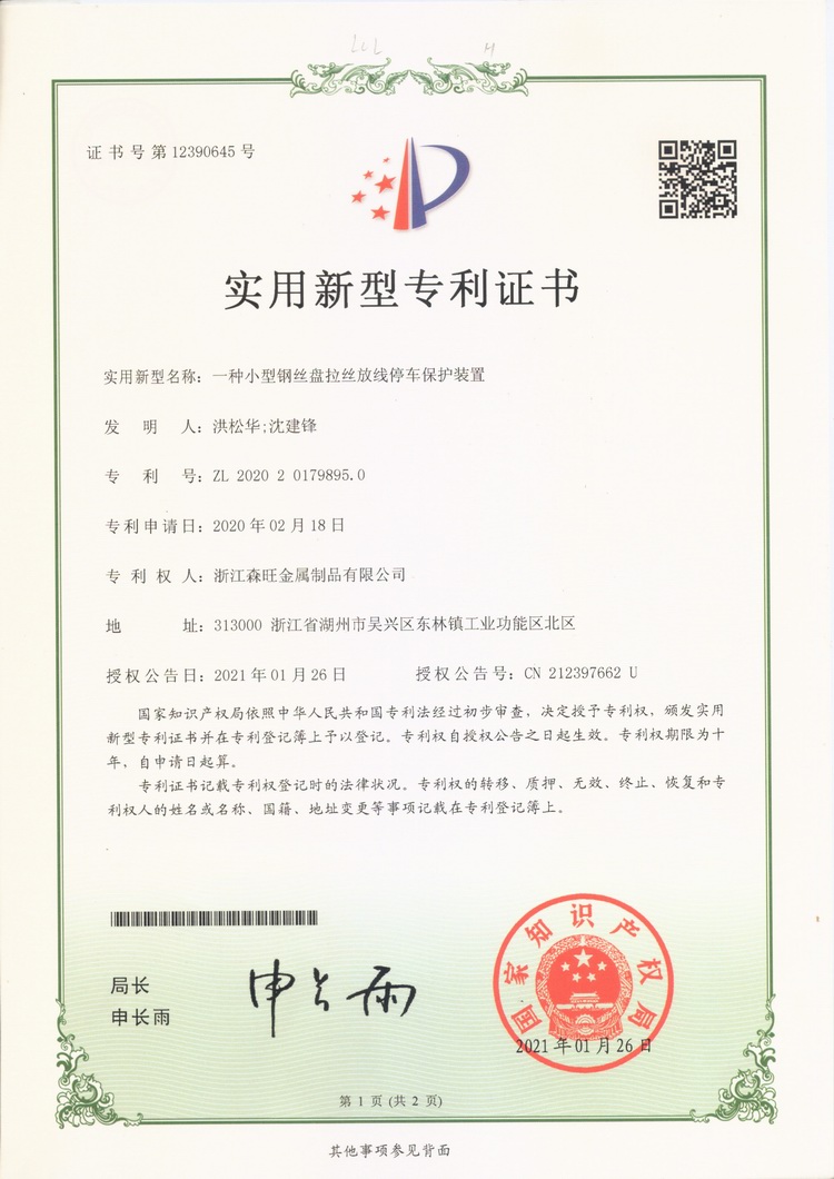 浙江森旺金屬制品有限公司成立于2012年,坐落湖州市吳興區(qū)東林鎮(zhèn)工業(yè)功能區(qū)。公司專業(yè)從事各類鍍鋅鋼絲、鋼絞線等產(chǎn)品的開發(fā)及生產(chǎn)。目前產(chǎn)品已廣泛應(yīng)用于各類通信光電纜,電力輸送,電氣化鐵路工程,各類堤壩防護(hù)及農(nóng)業(yè)溫室等工程領(lǐng)域。公司秉承“追求卓越品質(zhì),創(chuàng)建卓著信譽(yù)”的經(jīng)營(yíng)理念,始終堅(jiān)持專業(yè)化、規(guī)模化的經(jīng)營(yíng)模式。